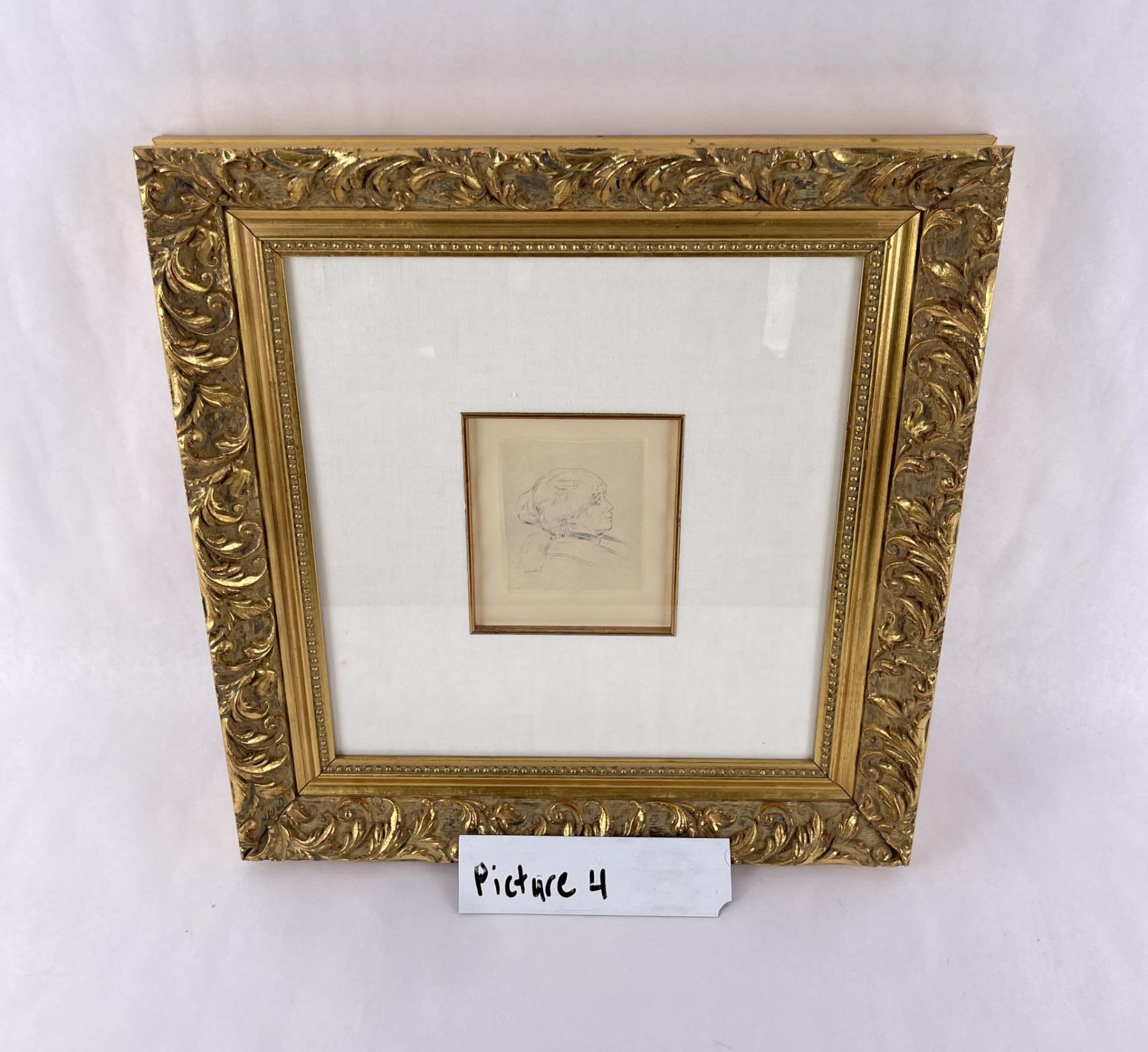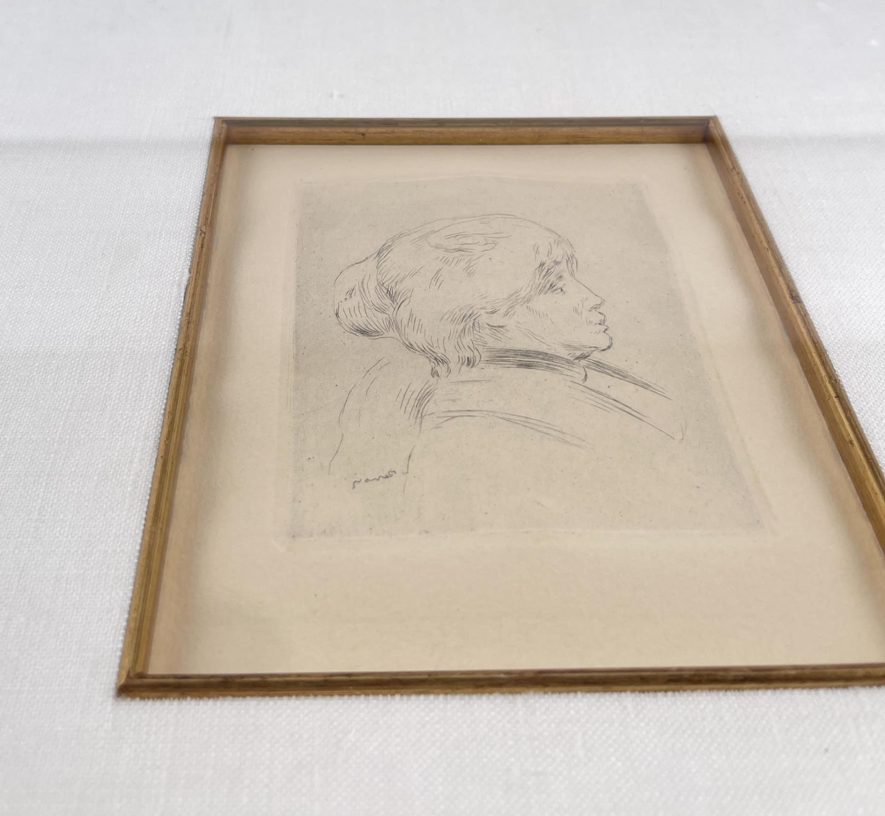 Framed dimensions 19 1/2" by 18 1/4". Pierre Auguste Renoir (1841 - 1919) was active/lived in France. Pierre Renoir is known for Impressionist and post impressionist figure and landscape painting. Renoir was born on February 25, 1841, in the small manufacturing town of Limoges. His family moved to Paris when he was four years old. Gounod advised him to become a musician, but Renoir felt more compulsion toward the graphic arts. At thirteen he joined a ceramic establishment where he painted flowers on porcelain. Later he supported himself by decorating fans. In 1861 he joined the Gleyre atelier where Sisley, Monet and Bazille were also studying. None of them was very happy there, but Renoir especially was out of sympathy with the academic atmosphere of the place. When the master accused him of seeking amusement from painting, he replied that of course he did, or he would otherwise abandon the pursuit. After a year he began to work without a teacher, adapting Courbet's trick of using a palette knife, and painting with purer and lighter colors. He first exhibited in 1868; he also participated in the famous Nadar exhibition of Impressionists in 1874. He was dependent on portraiture for his living until the auctions of his works in 1875 and 1877 which brought him some independence and enabled him to travel. In 1883 a sort of break occurred in his work. He felt he had gone to the end of Impressionism; he was reaching the conclusion that he did not know how to paint or draw. This bewilderment and discouragement, though exaggerated, had a salutary effect, for Renoir reviewed his methods, again studied the works of old masters whom he loved and went on painting pictures, better than before. By the 1890s Renoir was well settled into family life. Owing to his delicate bronchial tubes, he and his wife with their young son Pierre spent the winters by the Mediterranean and often in summer visited seaside spots on the Channel. In 1893, a second son, Jean, was born. Jean Renoir was to become the now famous movie director. Suffering from failing eyesight in his later years, Renoir began to use stronger colors. His last years were spent in Provence where he continued to paint although he could only get about in a wheelchair and his hand was so crippled with arthritis that his brush had to be strapped to his wrist. He could no longer get far from the house, but finding he could paint every day he was contented. He died in Cagnes.
