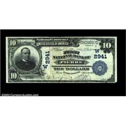 Pierre, SD - $10 1902 Plain Back Fr. 624 The First NB Ch. # (W)2941A most appealing note from the South Dakota state capital. Bright Very Fine, with a tiny corner tip missing well outside of the design. Important notice: We expect to be auctioning lots at the rate of 200-250 per hour. Sometimes eBay Premier live bid software cannot keep up with that pace, so we strongly recommend that you place a realistic proxy bid now as insurance to avoid disappointment. Also please note that all Heritage/CAA lots purchased through eBay Premier carry a 20% Buyer's Premium. Please make sure you read the Terms and Conditions.