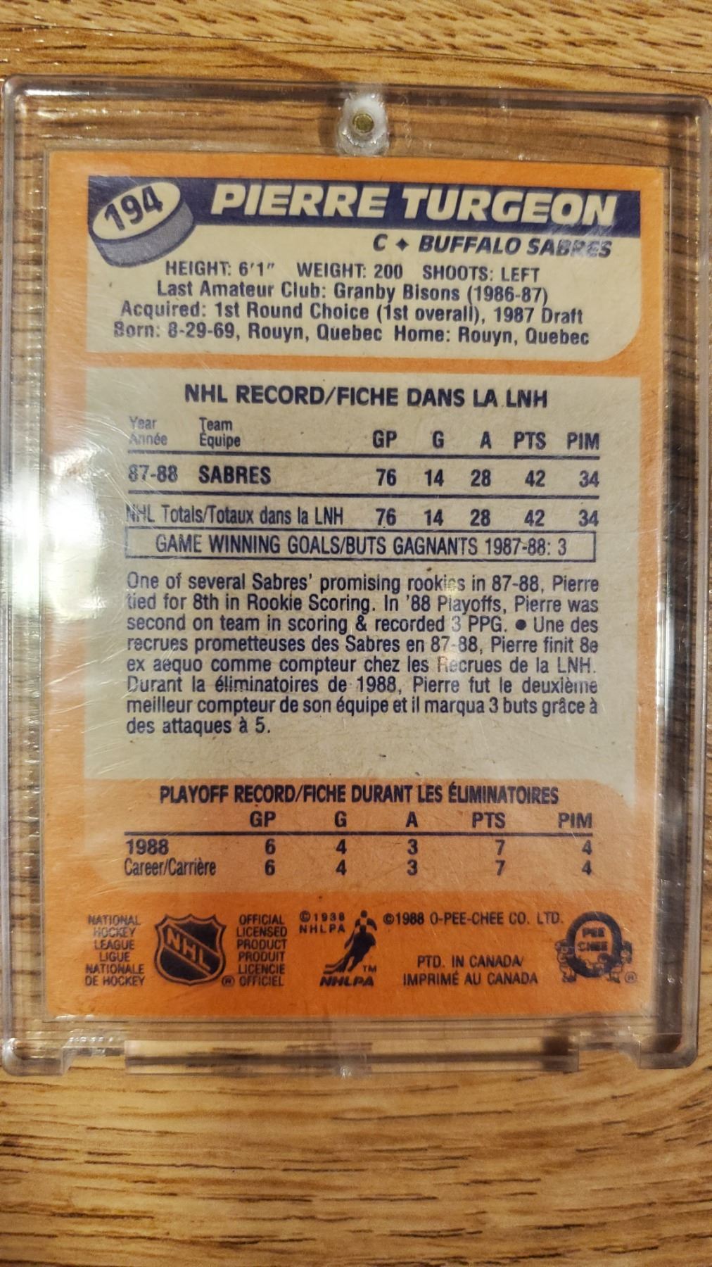 Pierre Turgeron OPC rookie 1988-89 - great condition