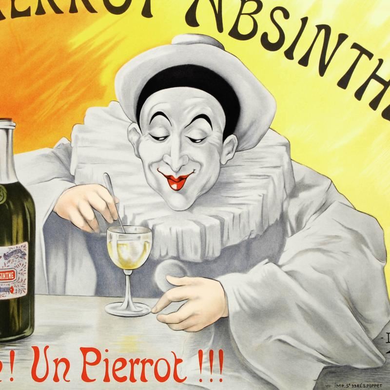 "Pierrot Absinthe" is a hand pulled lithograph on paper by the RE Society, image originally by Lucien Metivet. Includes Certificate of Authenticity! Measures approx. 34" x 27" (image).