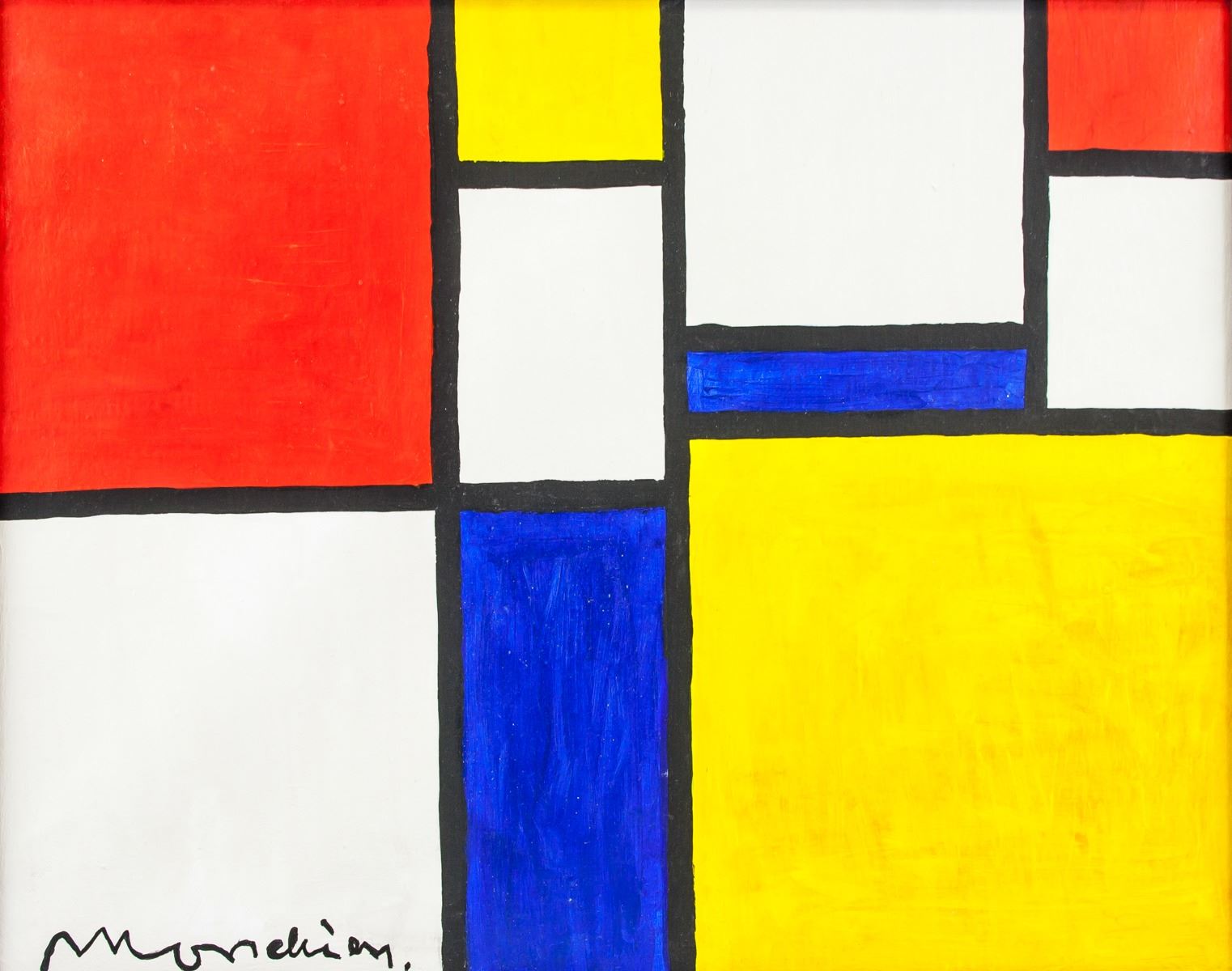 Oil on canvas, framed. Featuring an abstract expressionist composition. Signed Mondrian on the lower left corner. Attributed to Piet Mondrian (1872-1944, Dutch). 40.5 x 50.5 cm (15.9 x 19.9 inches), frame: 54 x 65 cm (21.3 x 25.6 inches). PROVENANCE: Southern Ontario estate