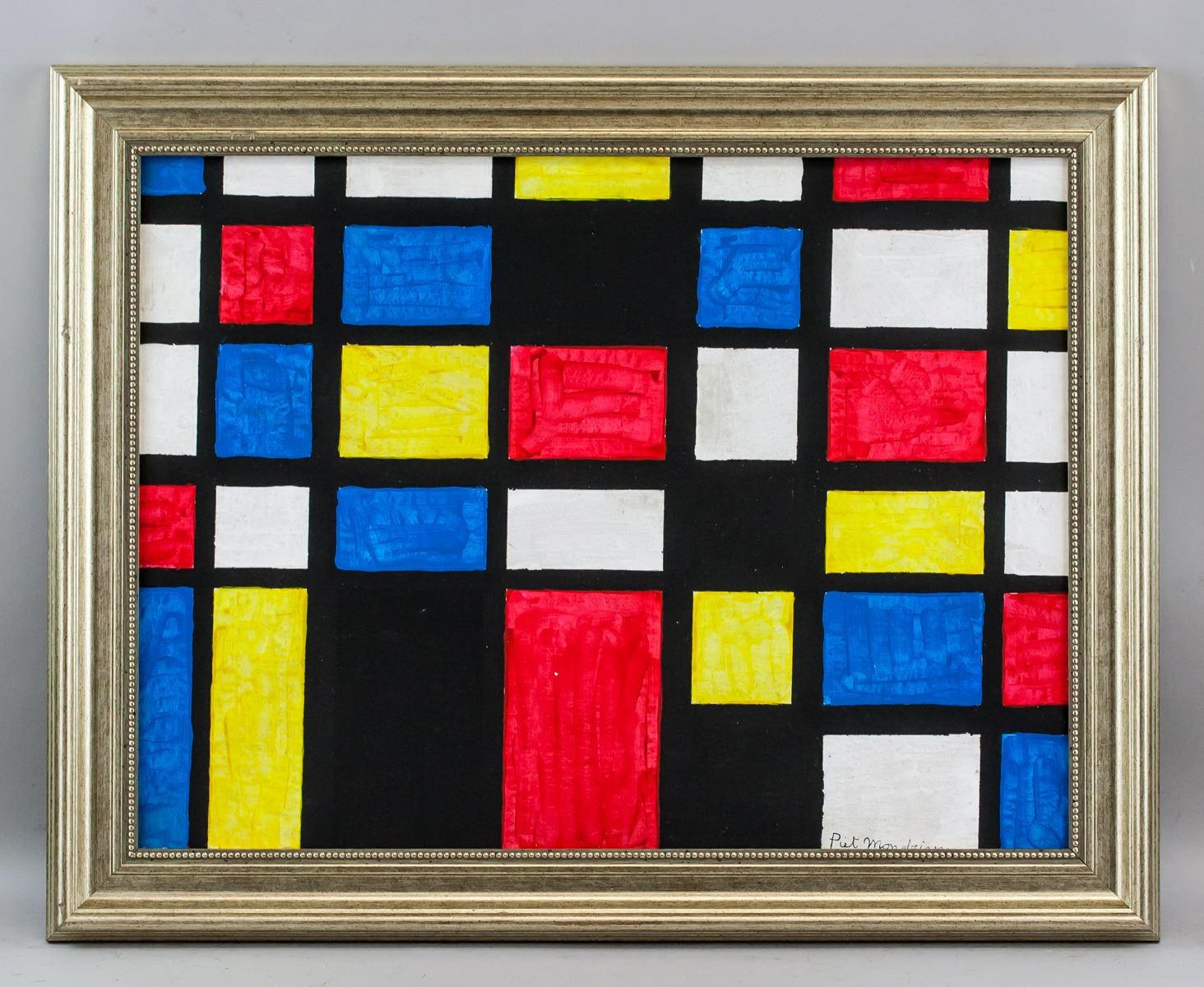 Oil on canvas, framed. Featuring an abstract expressionist composition. Signed Piet Mondrian on the lower right corner. Attributed to Piet Mondrian (1872-1944, Dutch). 38.5 x 50.5 cm (15 x 20 inches). Framed size: 46 x 59 cm (18.5 x 23.25 inches). PROVENANCE: Southern Ontario estate