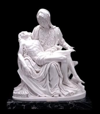 Pieta by Michaelangelo Marble Sculpture, Made of Carrara Marble, Dimensions: 8"Wide x 4.5 x 10.5"High. The Piet? (1498?1499) is a masterpiece of Renaissance sculpture by Michelangelo Buonarroti, housed in St. Peter's Basilica in Vatican City. It is the first of a number of works of the same theme by the artist. The statue was commissioned for the French cardinal Jean de Billheres, who was a representative in Rome. The sculpture, in Carrara marble, was made for the cardinal's funeral monument, but was moved to its current location, the first chapel on the right as one enters the basilica, in the 18th century. It is the only piece Michelangelo ever signed