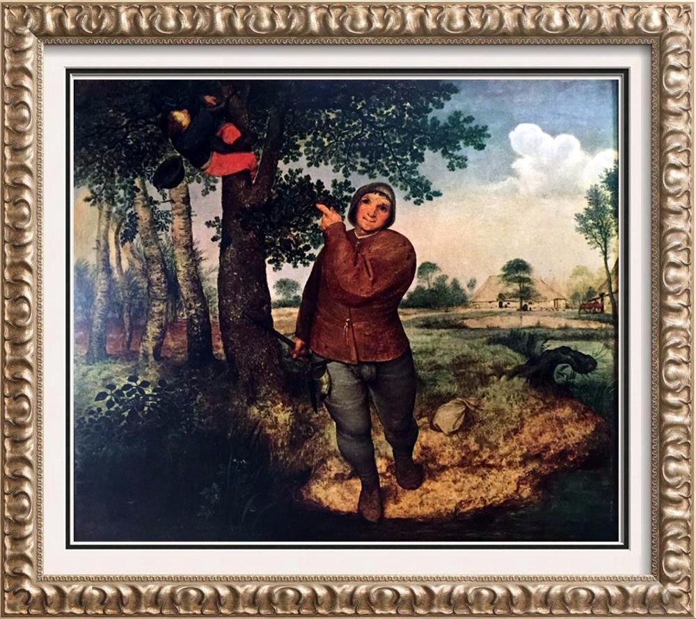 Artist Name: Pieter Bruegel | Title of Art: (Plate Fourteen) The Bird's Nest c.1568 | Medium: Fine Art Print from Museum Artist | Unsigned & Unnumbered | Art Size: Approx 8 x 10 | Offered Unframed. Framing presentation if shown is for concept only. If you need assistance with custom framing, call the experts at ArtForSale | Circa: 1954