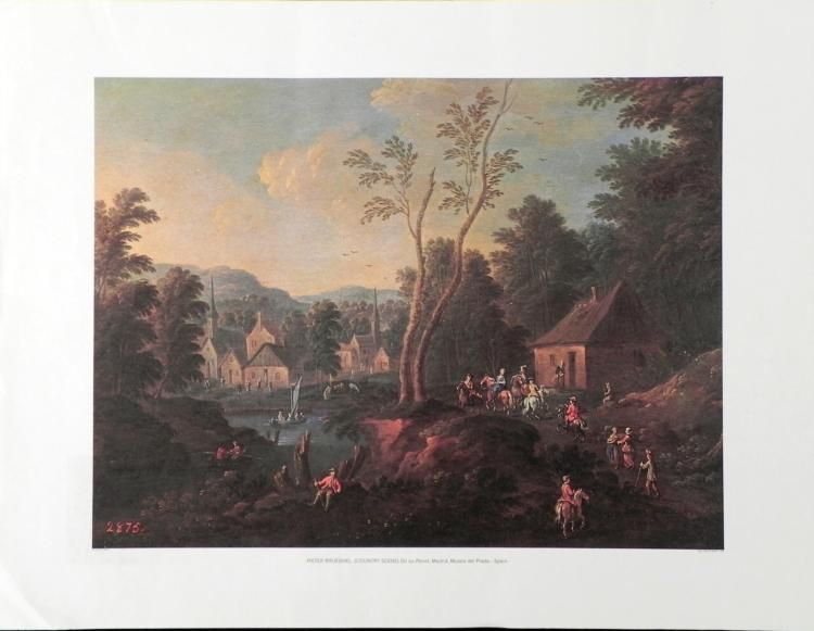 Artist: Pieter BrueghelTitle: Country SceneOriginal in Museo del Prado- Madrid, SpainMedium: Lithograph print on paperImage size: 11 1/2" x 15 1/2"Sheet size: 15 1/2" x 20 1/4"Condition: Very good; minor staining, rip, and creases to corners