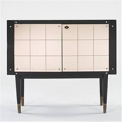 Pietro Chiesa mirrored bar Fontana Arte Italy, c. 1938 black and mirrored glass over lacquered walnut, brass 43.5 w x 15.5 d x 38 h inches Two doors conceal a storage compartment.