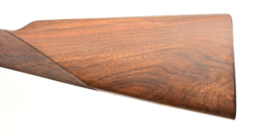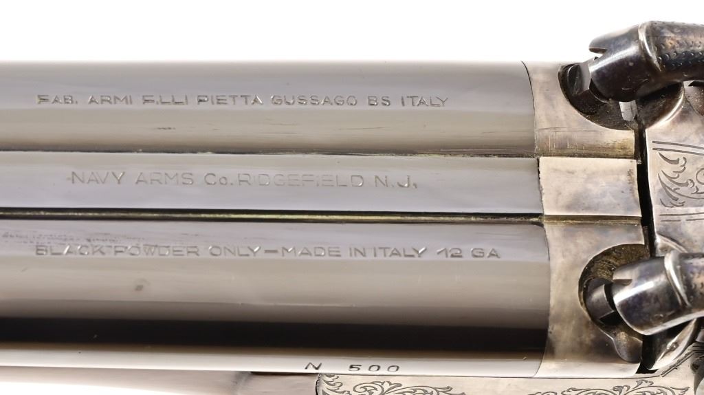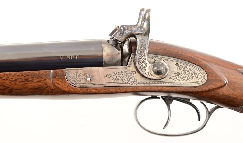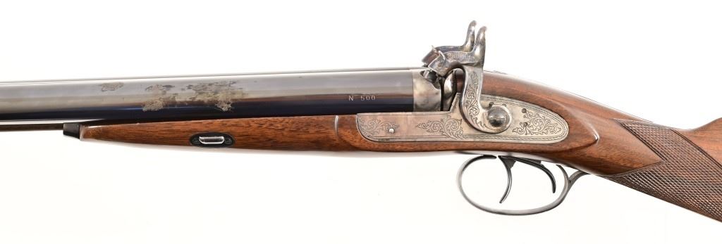 SN N500. 28" barrels. Bluing is nice except spot on left barrel. Wood is very nice. Hammers work. Black Powder.