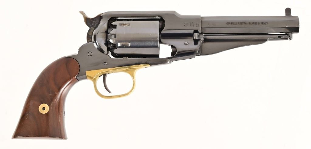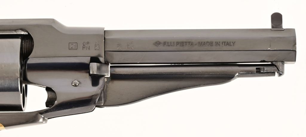 S/N R546600. Barrel address reads F.LLI PIETTA, made in Italy. 5 1/2" barrel. .44 caliber. Black Powder.