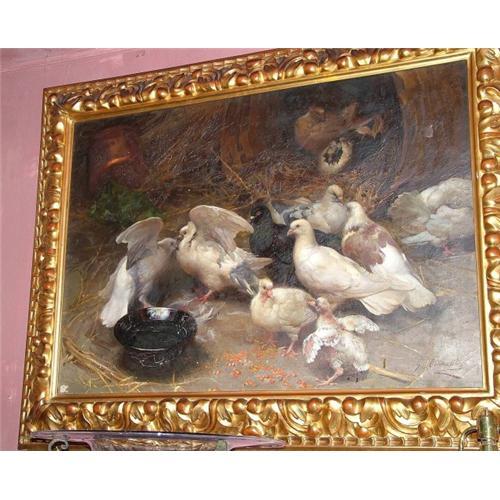 TITLE :PIGEONS , Exquisite original oil on Canvas by the Italian Master Giuseppe Pennasilico ,born in Naples in 1861 (d Genova 1940), Disciple of Domenico Morelli and Gioachino Toma in Naples. then established in Genova. Fertile and eclectic, he exposed in numerous national and international shows (Venice. Bologna. Milan. Rome. Berlin. Paris. London.). His works are treated with vigour both in the color and in the form.