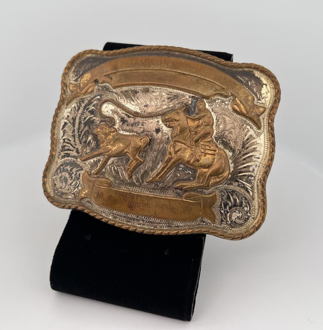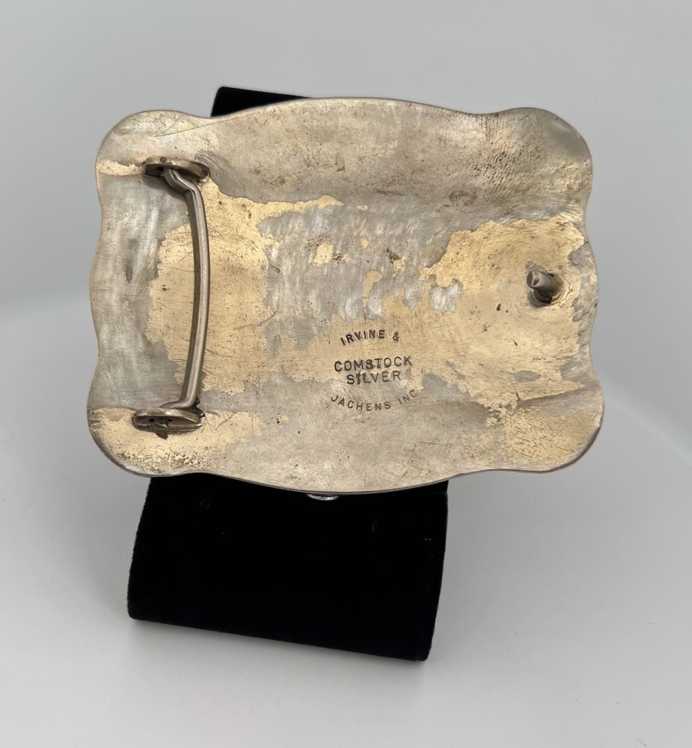 Very nice old Cowboy Trophy Belt Buckle. 3 1/2" long. Irvine Jachens Comstock Silver.