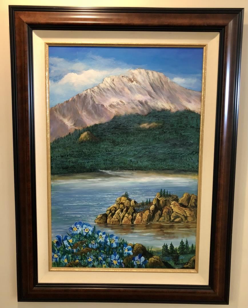 A stunning landscape of the famous Rocky Mountain landmark. Bought at Violet Parkhurst's studio in San Pedro, CA. 36 x24" framed, COA.