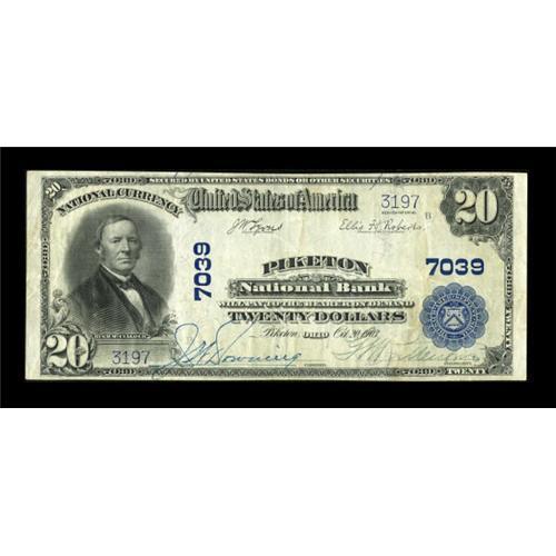 <B>Piketon, OH</B></I> - $20 1902 Plain Back Fr. 650 <B>Piketon NB</B></I> Ch. # 7039<BR> A nice large example from this one bank Pike County community. Pen signed <B>Very Fine, </B></I>ex-lot 2340 from our January, 1999 sale. <BR><BR><b>Shipping:</b> Coins & Currency (<a target="_blank" href="http://www.heritageauctions.com/common/shipping.php">view shipping information</a>)