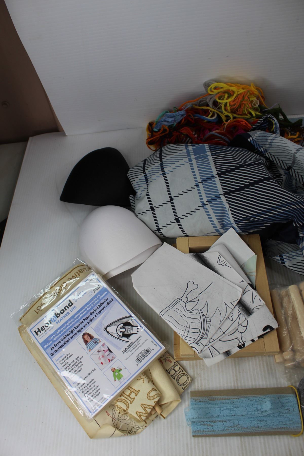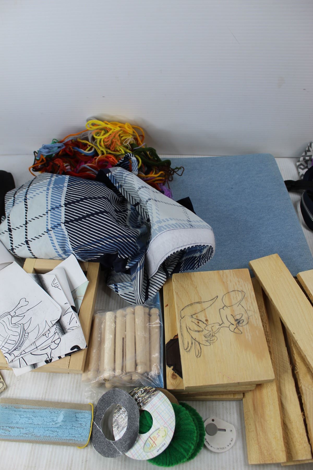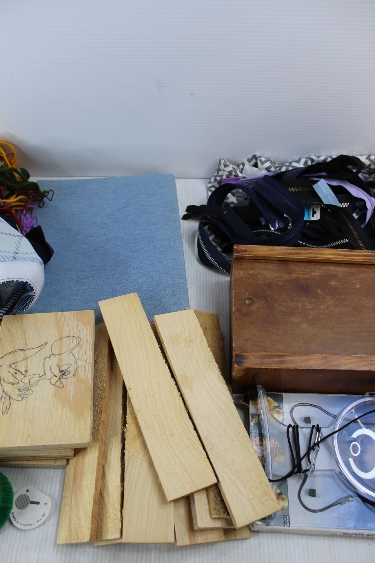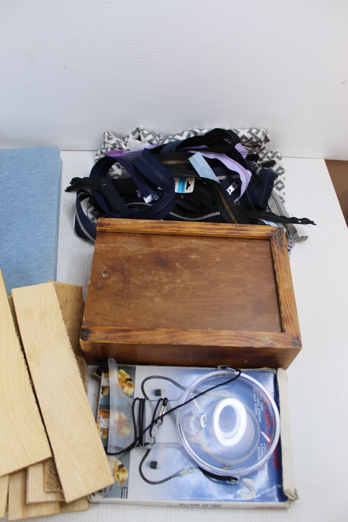 Pile Of Zippers, Yarn, Wooden Box w/ Sliding Lid-10'' x 7'' x 3'', Misc.