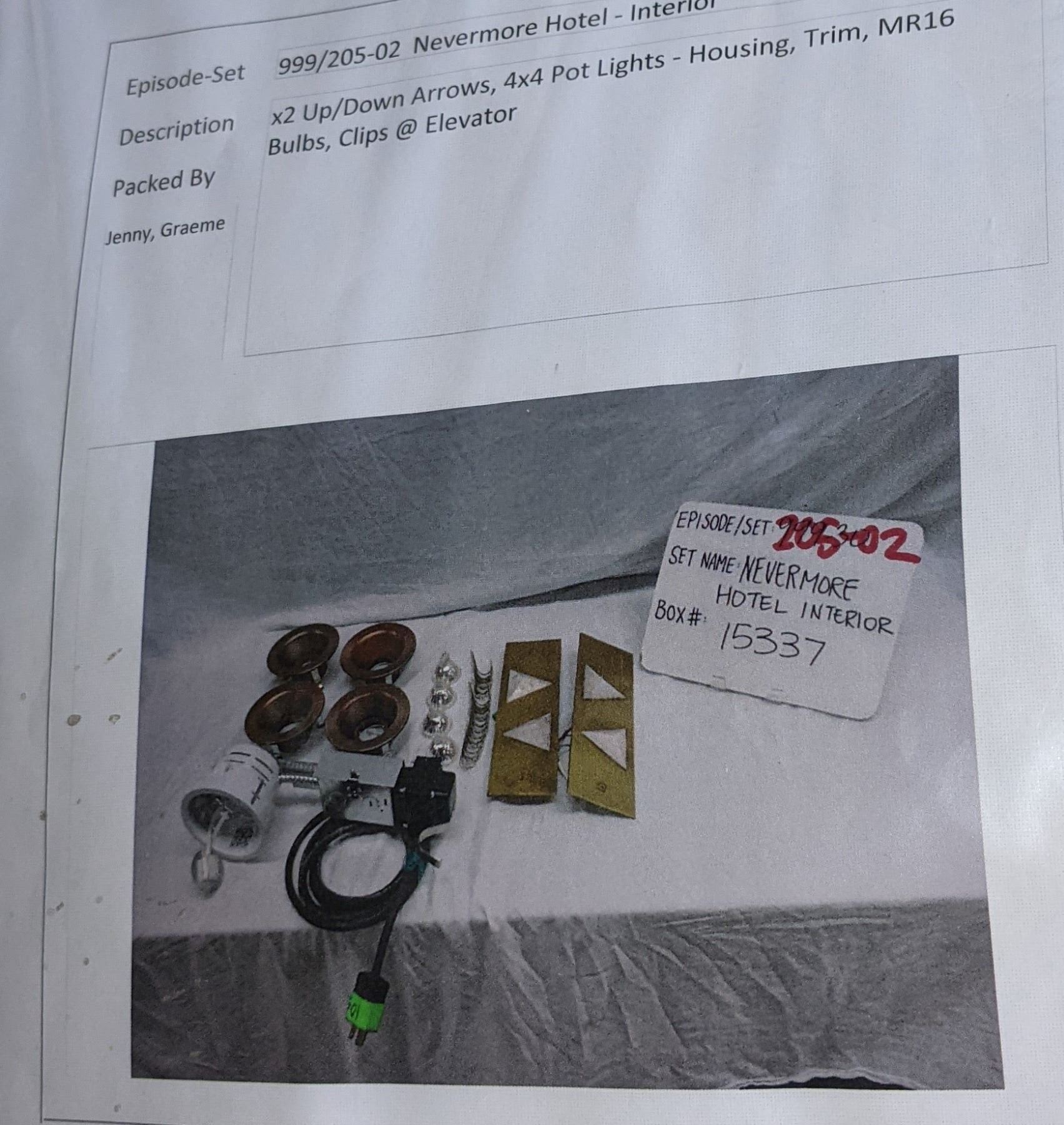 Pillow forms, movie prop lights, ceiling flush mount fixtures, elevator arrows