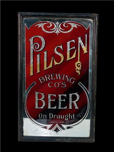 Pilsen Brewery Co. Corner Post Sign Reverse Glass Pilsen Brewing Co. Beer on Draught Beautiful colors
