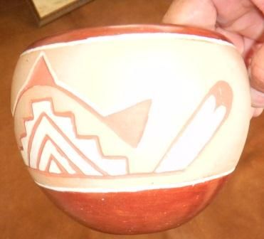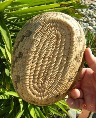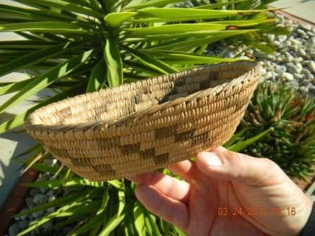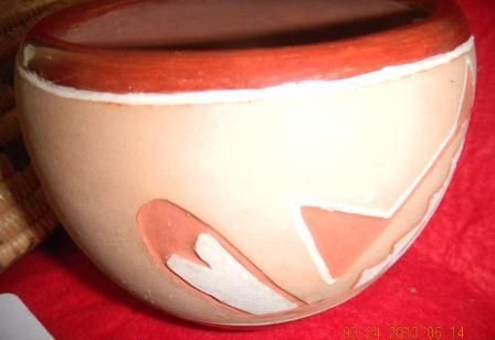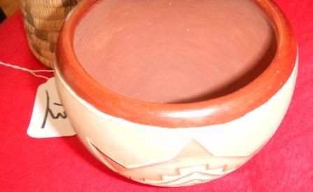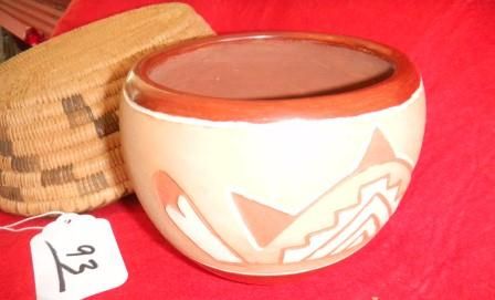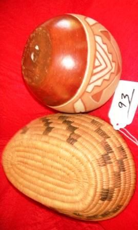 Pima Basket and San Juan Pot. Basket measures 8 by 6 by 3 inches, Circa 1940's. Pot measures 5 by 4 inches, Circa 1960's. Shipping $20.00.