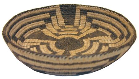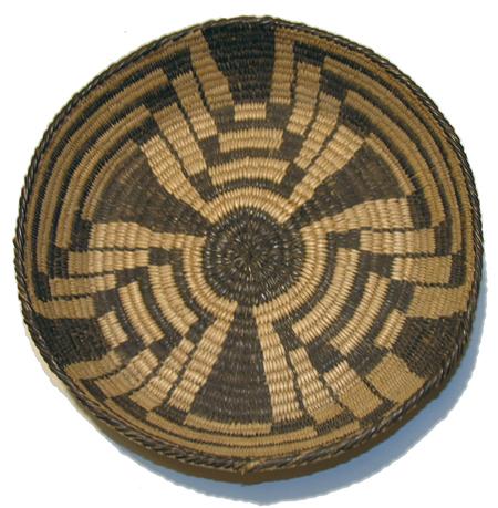 Circa Early 1900s, Superb tightly woven Pima tray with squash blossom motif. Excellent condition. 1-1/2" x 7-1/2"