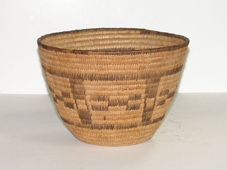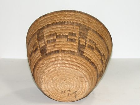 Ca. 1950s, Classic flared deep bowl with boxed geometric designs. Very good condition, nice patina. 6-1/2" x 9-1/4"
