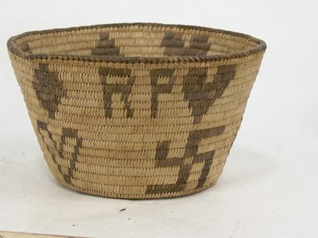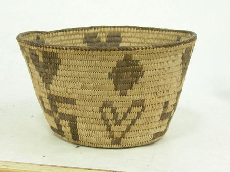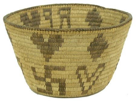 Mid 1900s, Very nice flared pictorial bowl loaded with interesting figures and symbols including hearts, diamonds, fylfots, etc. Very good condition, somewhat faded. 5" x 8-1/2"