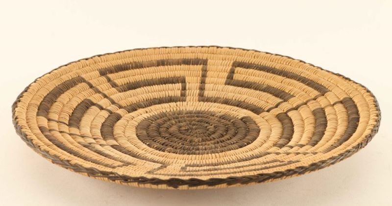 Sun pattern basketry tray. Measures 11 1/4" dia. good condition.