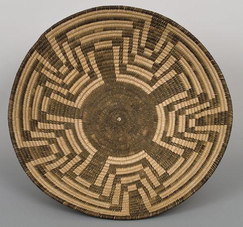 Pima Basket. 4" x 15” tray. Rare 5 petal squash blossom design. Perfect condition. c. 1930s. (est $2,900-3,500).
