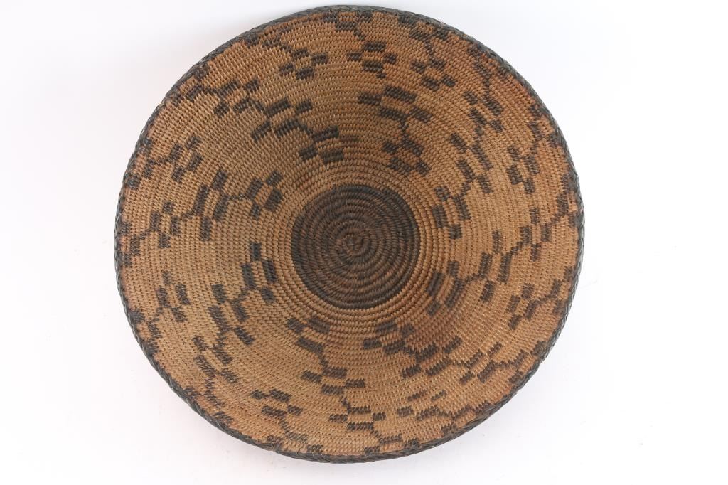 Measures 14.5" around and 4" tall. Some fading to outside of basket, otherwise good condition. 200