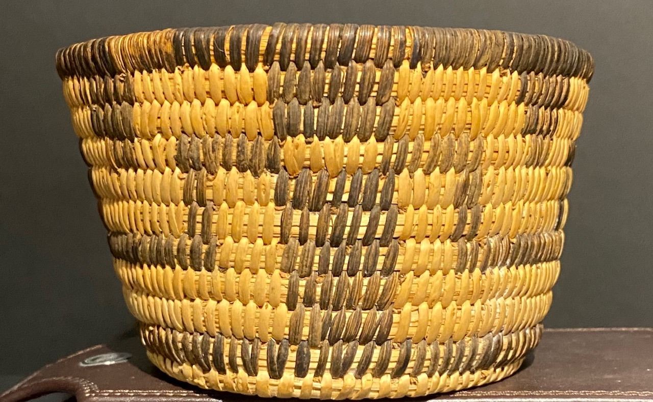 Nice Pima Basketry Bowl of the Smith Collection this Basket measures 5"-at the widest point and tapers down to 3". It is 2"-tall.