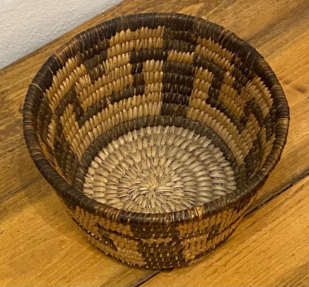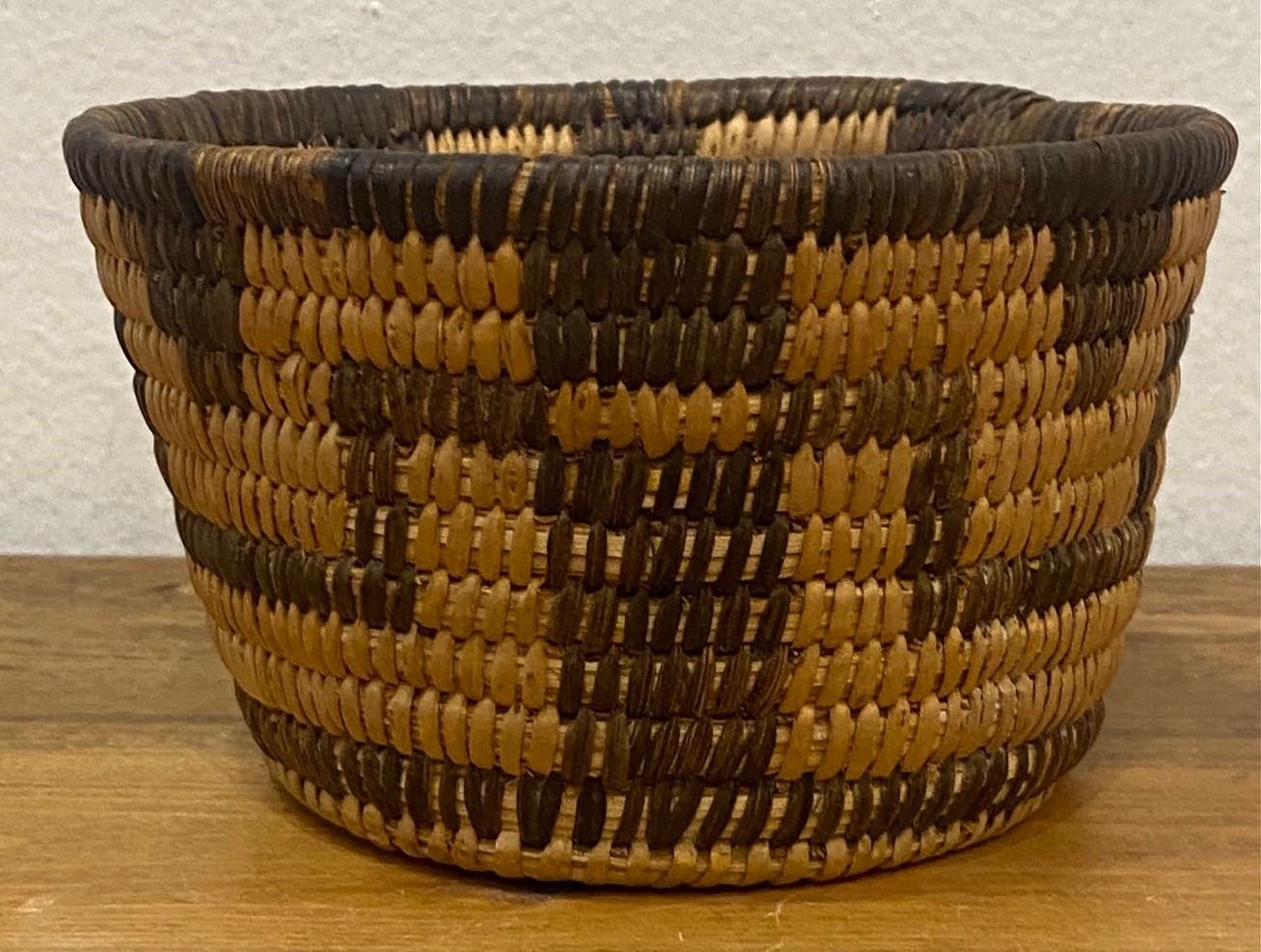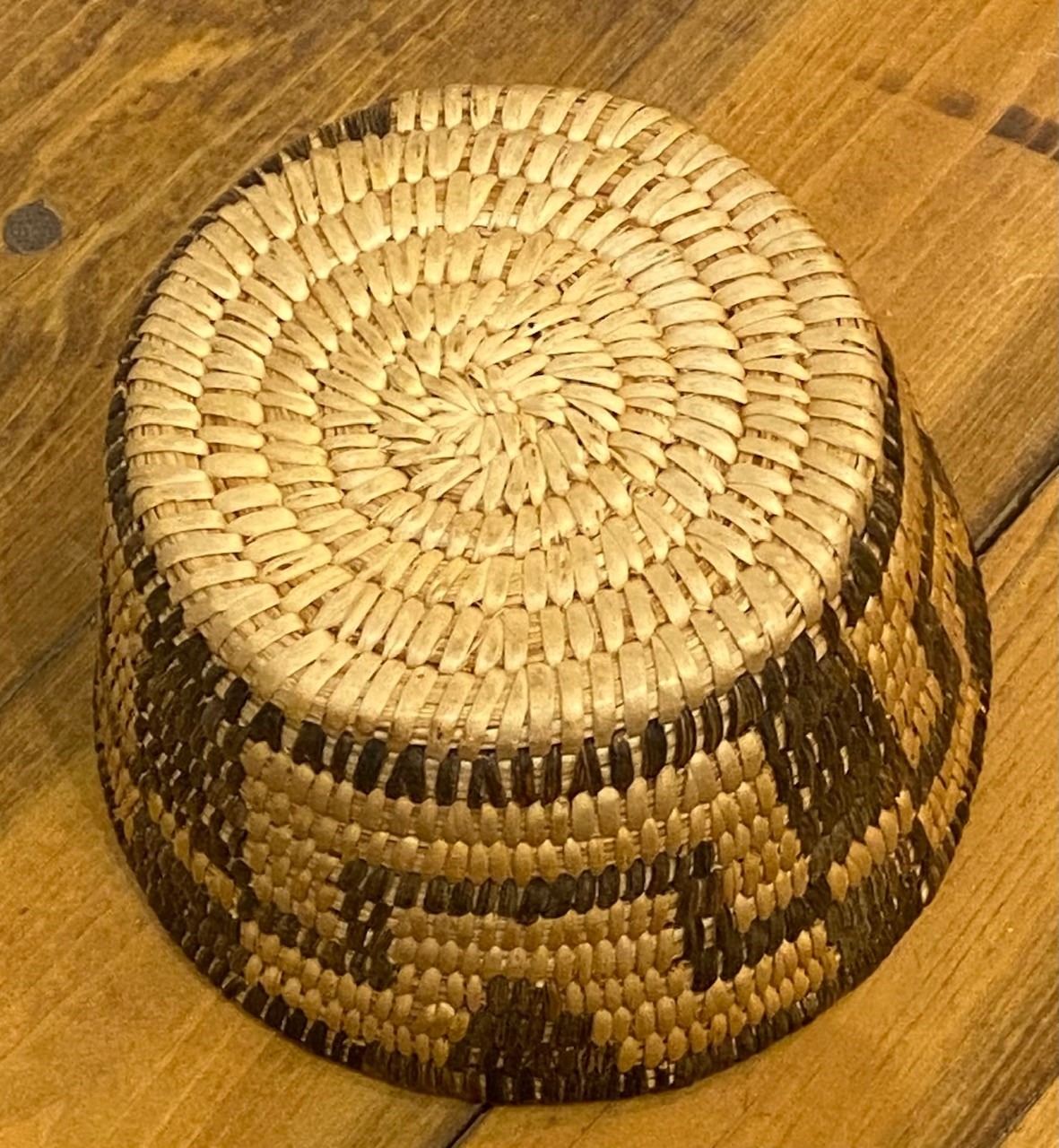 4 Figures circle this Pima Basket Measuring 2.75-inches tall by 5-inches wide.