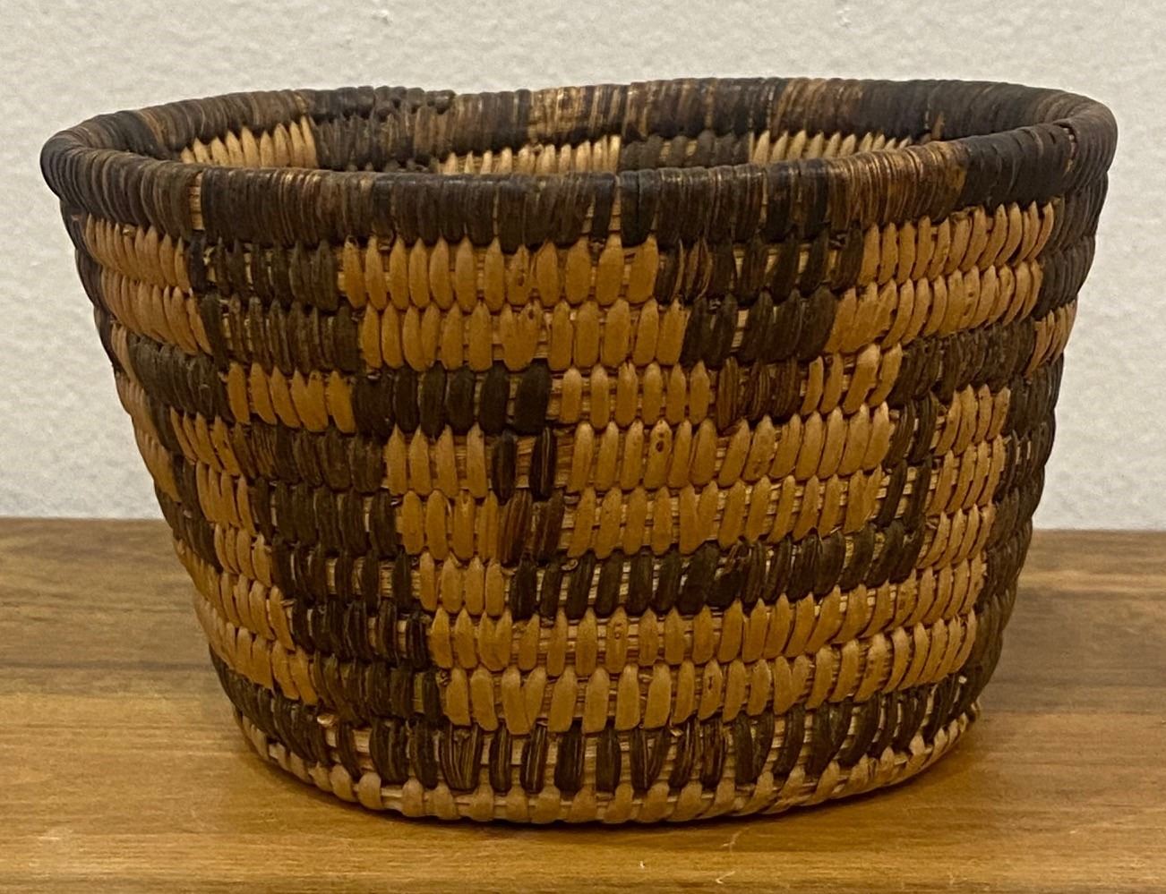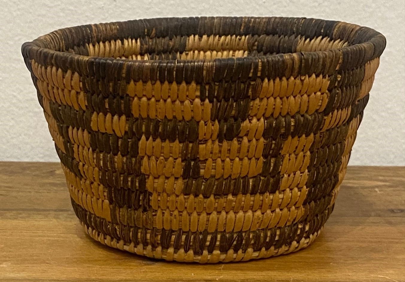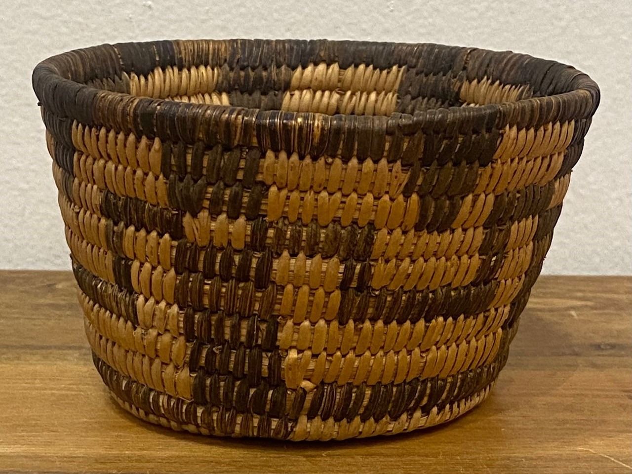 4 Figures circle this Pima Basket Measuring 2.75-inches tall by 5-inches wide.