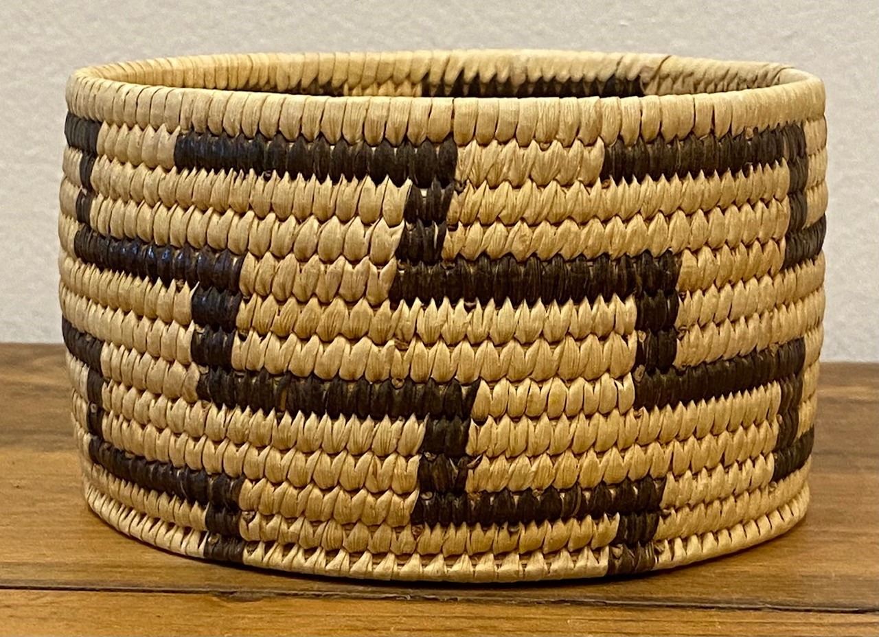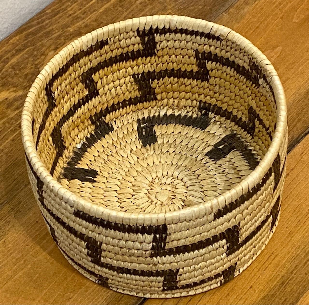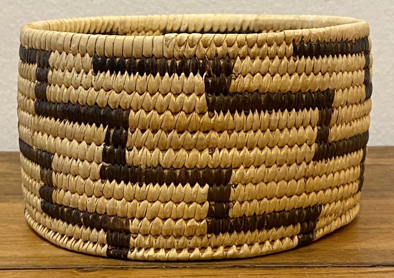 Out of the Smith Pima Basket Collection, this Basket measures 2.5-inches tall by 4.5-inches wide. In great condition.