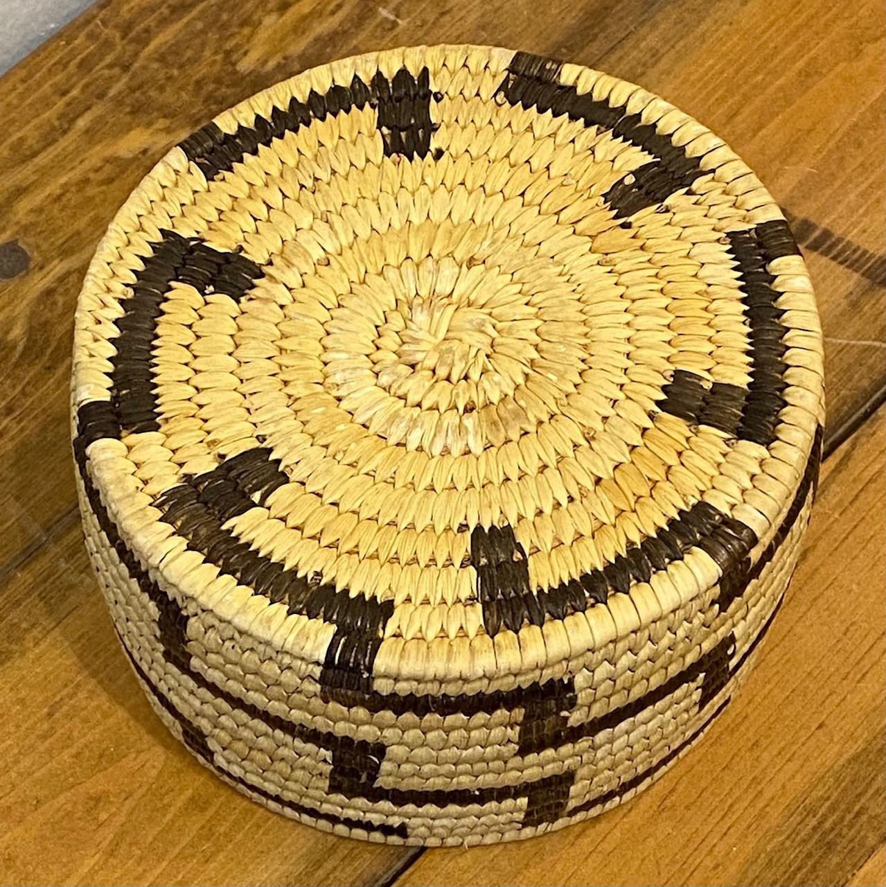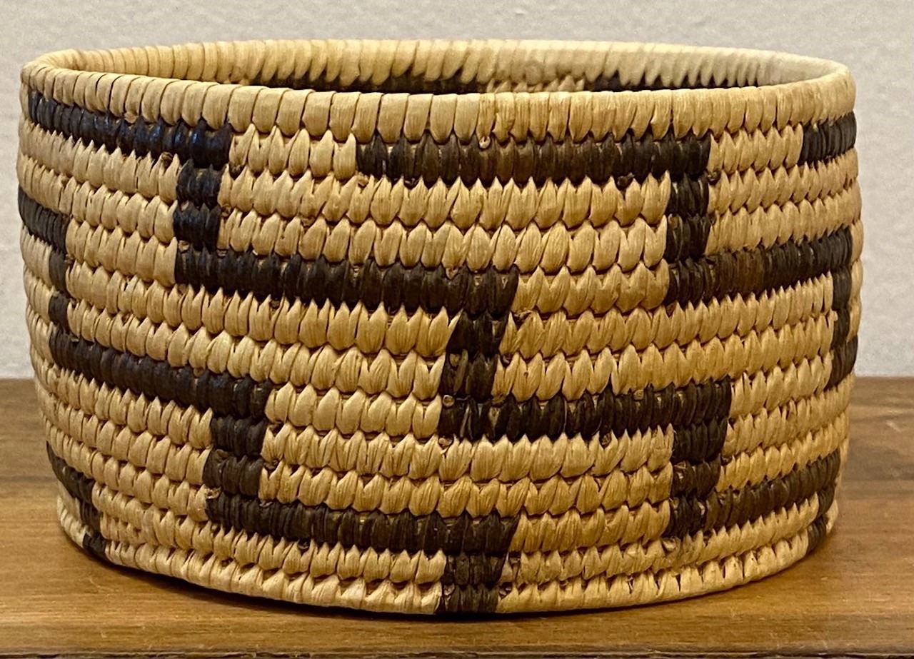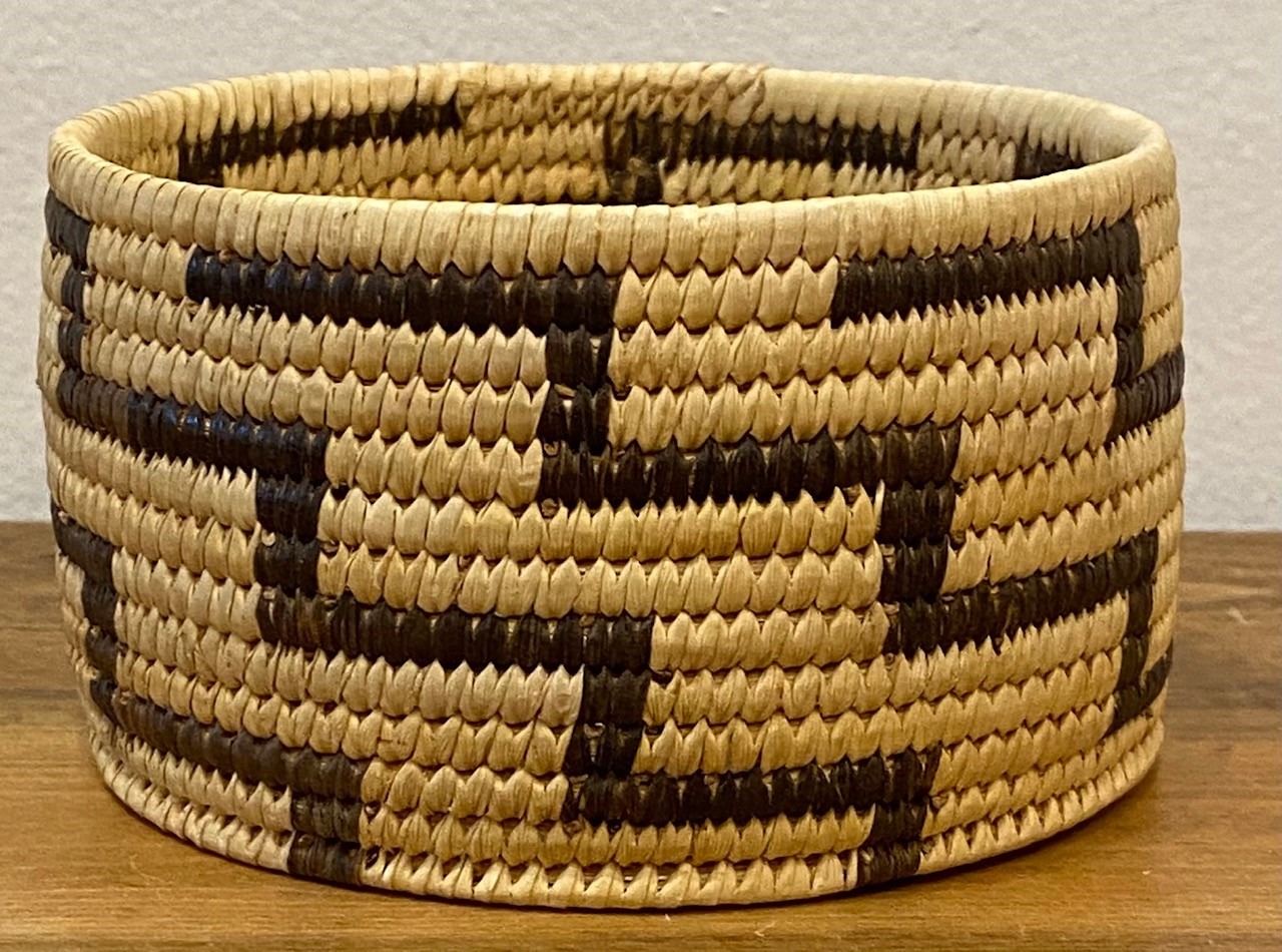 Out of the Smith Pima Basket Collection, this Basket measures 2.5-inches tall by 4.5-inches wide. In great condition.