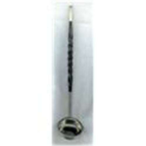 8.1/2" long. Silver plate and twisted mastedoine? which has 3 chips-very small. 1.1/2" diameter bowl. For serving Pimms. Circa 1890.