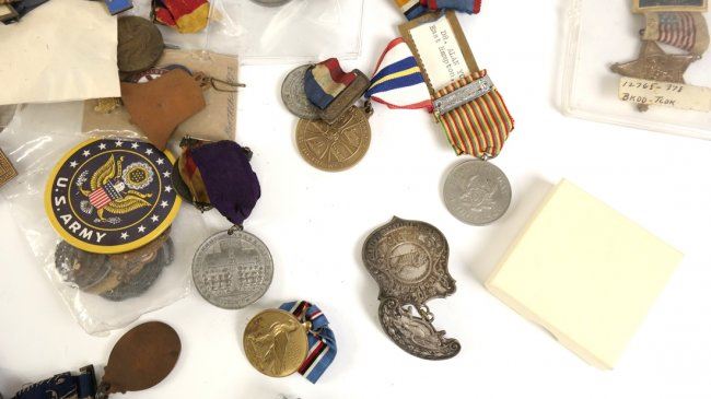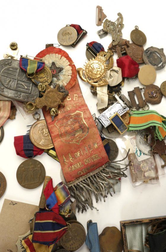 A large reference collection with limited duplication from over 50 years of Dr. York's collecting from various topical scenes and genres. Virtually all are pin-back items with approximately half having ribbons from the 19th century to the late modern 20th century. Included are important pieces from firehouses and Irish related collecting. There are also miscellaneous military and political items from the United States and Europe. Mostly base metal, a few silver. Average size, generally 25mm or less. Well over 250 items. Generally very fine or better condition. An important collection.