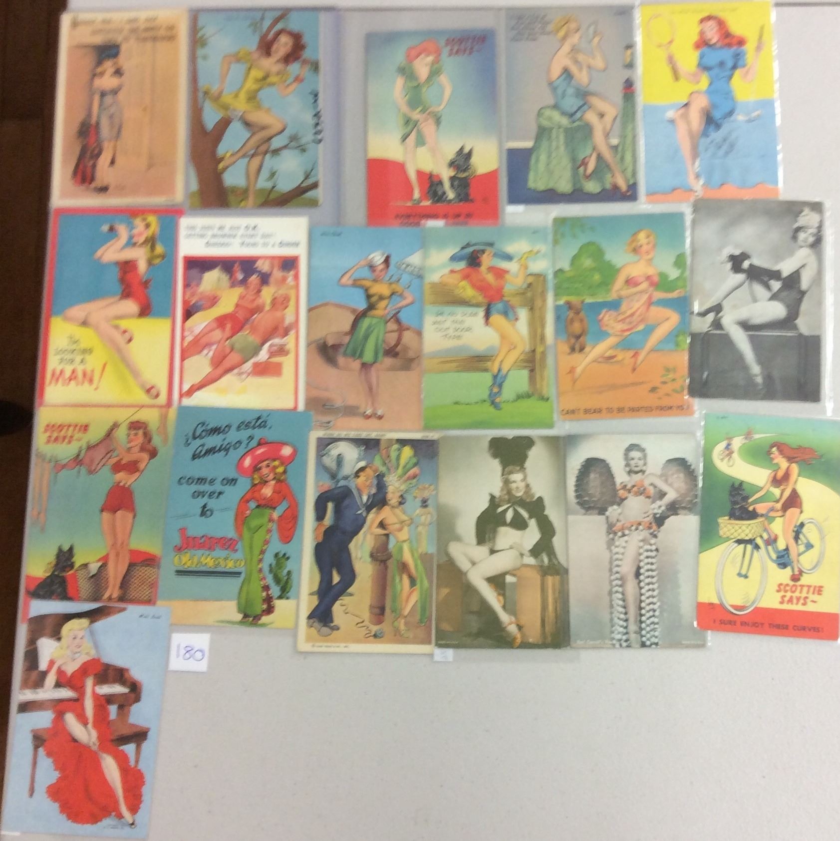 Approx. 120 lady pin up postcards. Early to linen.
