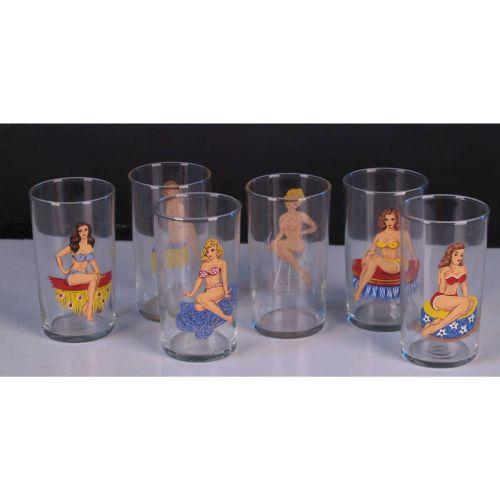 Pin-up Girl Nudie Drinking Glasses set of 6