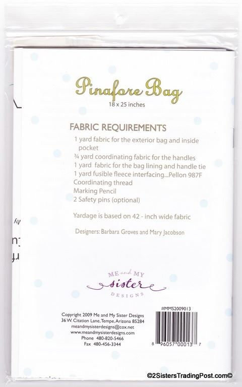 Pinafore bag designed for Me and My Sister Designs finished bag 18" x 25" MSRP $10.00