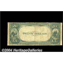Pinckneyville, IL - $20 1882 Value Back Fr. 581 The First NB Ch. # (M)6025 Fine. The John Hickman project reports two $5s and a $10 Value Back on this bank, but this is the first $20 Value Back for the compilation. This example has lightly handled edges and good color, while the signatures have faded. Fine. <BR><BR><B>Important notice:</B> Heritage usually auctions material at the rate of 200-250 lots per hour. On some occasions eBay Live bid software or the Internet may not be able to keep up with the pace of the auction. We recommend placing a realistic absentee bid now as insurance to avoid disappointment. Occasionally the auctioneer may eliminate or reject an eBay Live bid, and the auctioneer may also reopen a lot after the close of the eBay live bidding (usually because we missed an audience bid), and may reject your bid even if it shows you as the winning bidder. By bidding via eBay Live, you agree that Heritage may award the lot to another bidder at its sole discretion under the circumstances described above or any other reasonable circumstances. Since eBay bids are not shown to us until we open the lot on the floor, we treat those bids just like floor bids. In most cases the floor responds before the eBay bid is presented to us, due to Internet lag time, so for consistency we have made it a policy that floor bids are always considered first over tie eBay live bids. Also please note that all Heritage lots purchased through eBay Live carry a 20% Buyer's Premium. Please make sure you read the Terms and Conditions before you bid. <BR><BR><B>IMPORTANT ANNOUNCEMENT ABOUT RESERVES:</B> Heritage now divulges all reserves on its web site 7 days before every auction. If you want to know whether the reserve on this lot has been met, and if not, what the reserve amount is, please visit this lot page on the HeritageCoin.com web site, or email: bid@HeritageGalleries.com