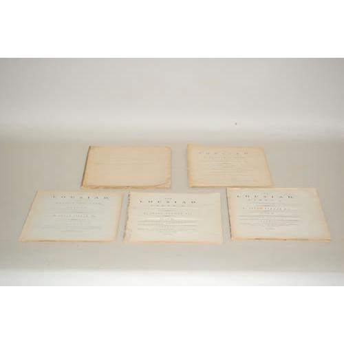 Pindar, Peter. A Group of 5 Cantos as Listed (Disbound). 4to - over 9¾" - 12" tall. Good ++ condition. ***The Lousiad. An Heroi-Comic Poem. Canto II. (1787) London: Printed for G. Kearsley. [2] 45pp [3]. ***The Lousiad, An Heroi-Comic Poem. Canto IV. (1792) London: Printed for H.D. Symonds. [2] 23pp [3]. ***The Lousiad. Canto V. and Last - A New Edition (2 copies), (1795) London: Printed for J. Walker... iv, 38pp. ***Tales of the Hoy; Interspersed with Song, Ode, and Dialogue. A New Edition. (1798) London: Printed for W. Richardson.... With engraved frontis of Pindar. [4] iv, 64pp.