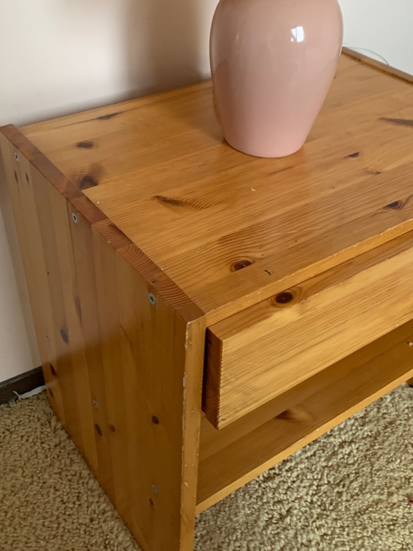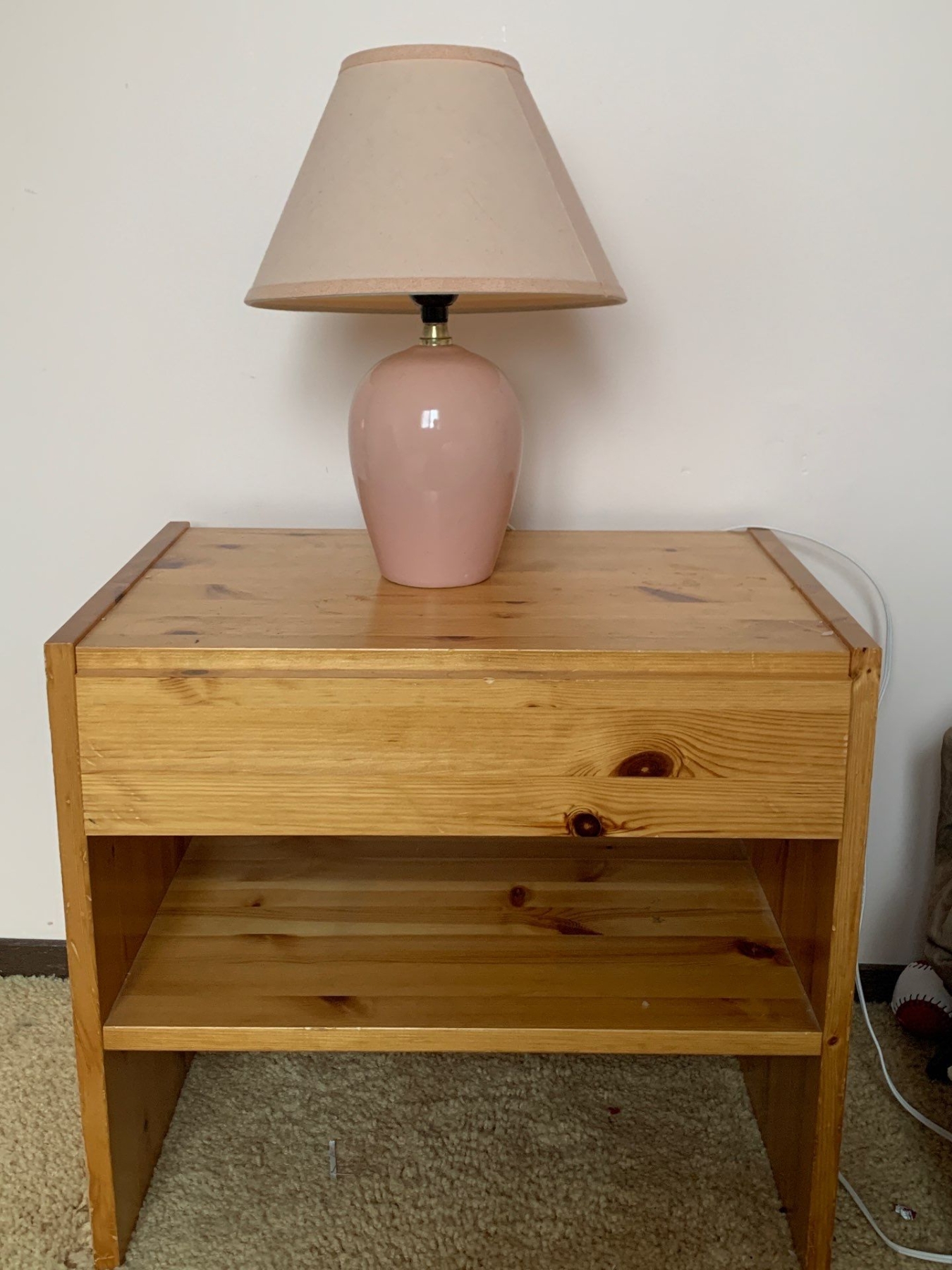 Pine Bedside Table with Lamp