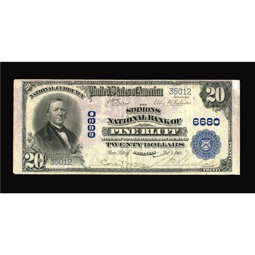 Pine Bluff, AR - $20 1902 Plain Back Fr. 650 The Simmon