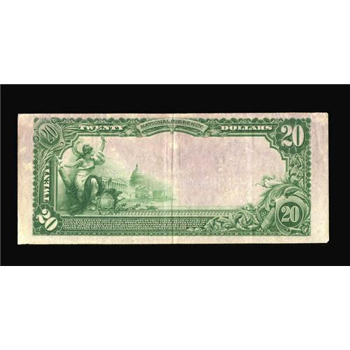 <B>Pine Bluff, AR</B></I> - $20 1902 Plain Back Fr. 650 <B>The Simmons NB</B></I> Ch. # 6680<BR>This note is pen signed by woman assistant cashier Cora Niven. President Nichol has also pen signed his name. This note has acquired a purple hue to its face and back. <B>Very Fine.</B></I><BR><I>From The Jacob and Heather Dedman Collection</B></I><BR><BR><b>Shipping:</b> Coins & Currency (<a target="_blank" href="http://www.heritageauctions.com/common/shipping.php">view shipping information</a>)