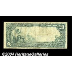 Pine City, MN - $20 1902 Plain Back Fr. 659 The First NB Ch. # (M)11581A nice pen signed example from the sole bank to issue in this small town. Fine, with a tiny inked number on the front that affects nothing. <BR><BR><B>Important notice:</B> Heritage usually auctions material at the rate of 200-250 lots per hour. On some occasions eBay Live bid software or the Internet may not be able to keep up with the pace of the auction. We recommend placing a realistic absentee bid now as insurance to avoid disappointment. Occasionally the auctioneer may eliminate or reject an eBay Live bid, and the auctioneer may also reopen a lot after the close of the eBay live bidding (usually because we missed an audience bid), and may reject your bid even if it shows you as the winning bidder. By bidding via eBay Live, you agree that Heritage may award the lot to another bidder at its sole discretion under the circumstances described above or any other reasonable circumstances. Since eBay bids are not shown to us until we open the lot on the floor, we treat those bids just like floor bids. In most cases the floor responds before the eBay bid is presented to us, due to Internet lag time, so for consistency we have made it a policy that floor bids are always considered first over tie eBay live bids. Also please note that all Heritage lots purchased through eBay Live carry a 20% Buyer's Premium. Please make sure you read the Terms and Conditions before you bid. <BR><BR><B>IMPORTANT ANNOUNCEMENT ABOUT RESERVES:</B> Heritage now divulges all reserves on its web site 7 days before every auction. If you want to know whether the reserve on this lot has been met, and if not, what the reserve amount is, please visit this lot page on the HeritageCoin.com web site, or email: bid@HeritageGalleries.com