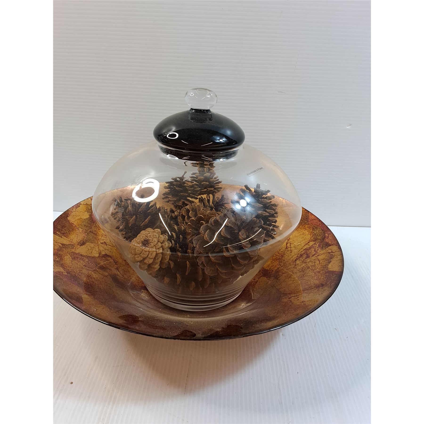 Pine Cones in Glass Centerpiece Jar & Glass Decor Bowl - 12  Diameter