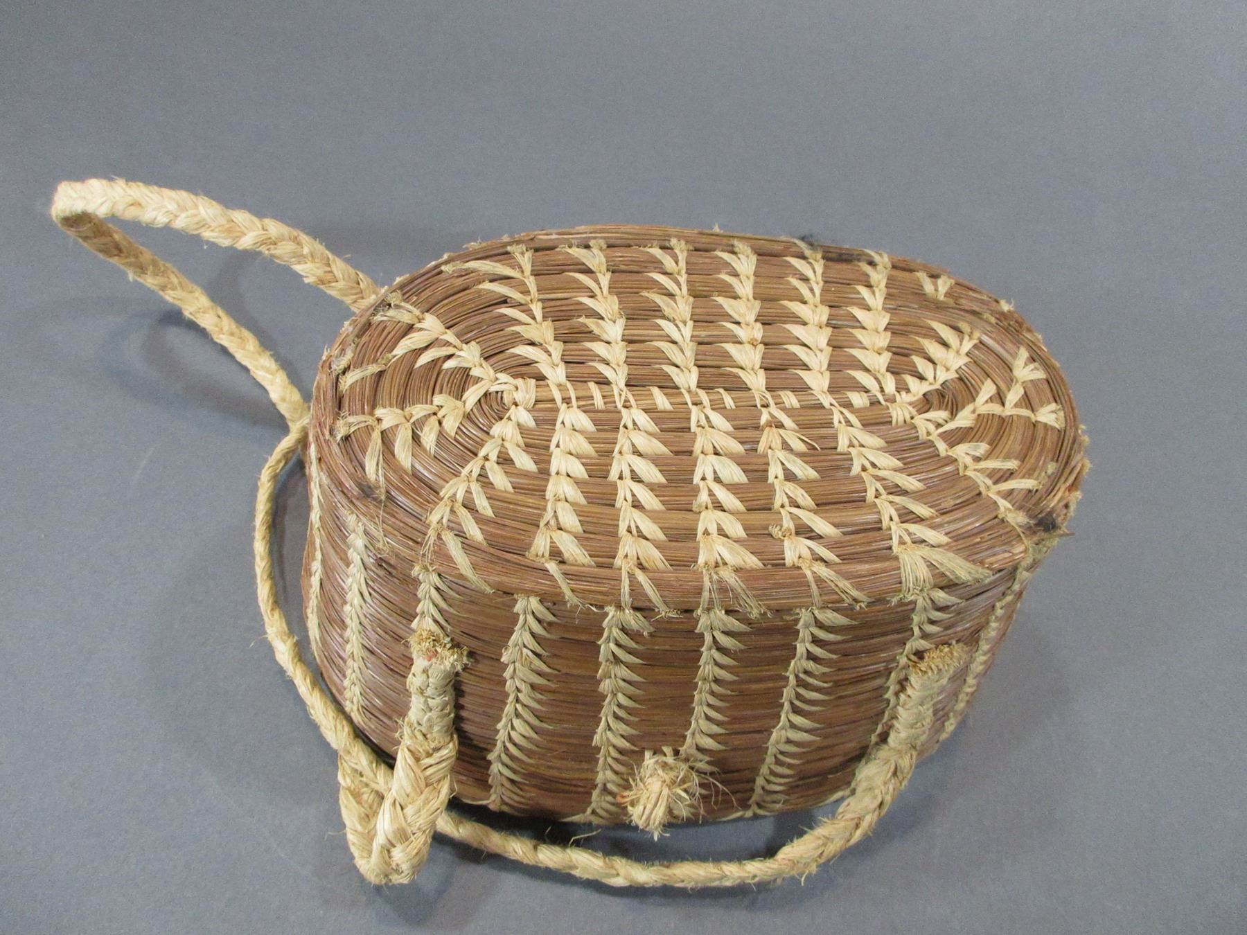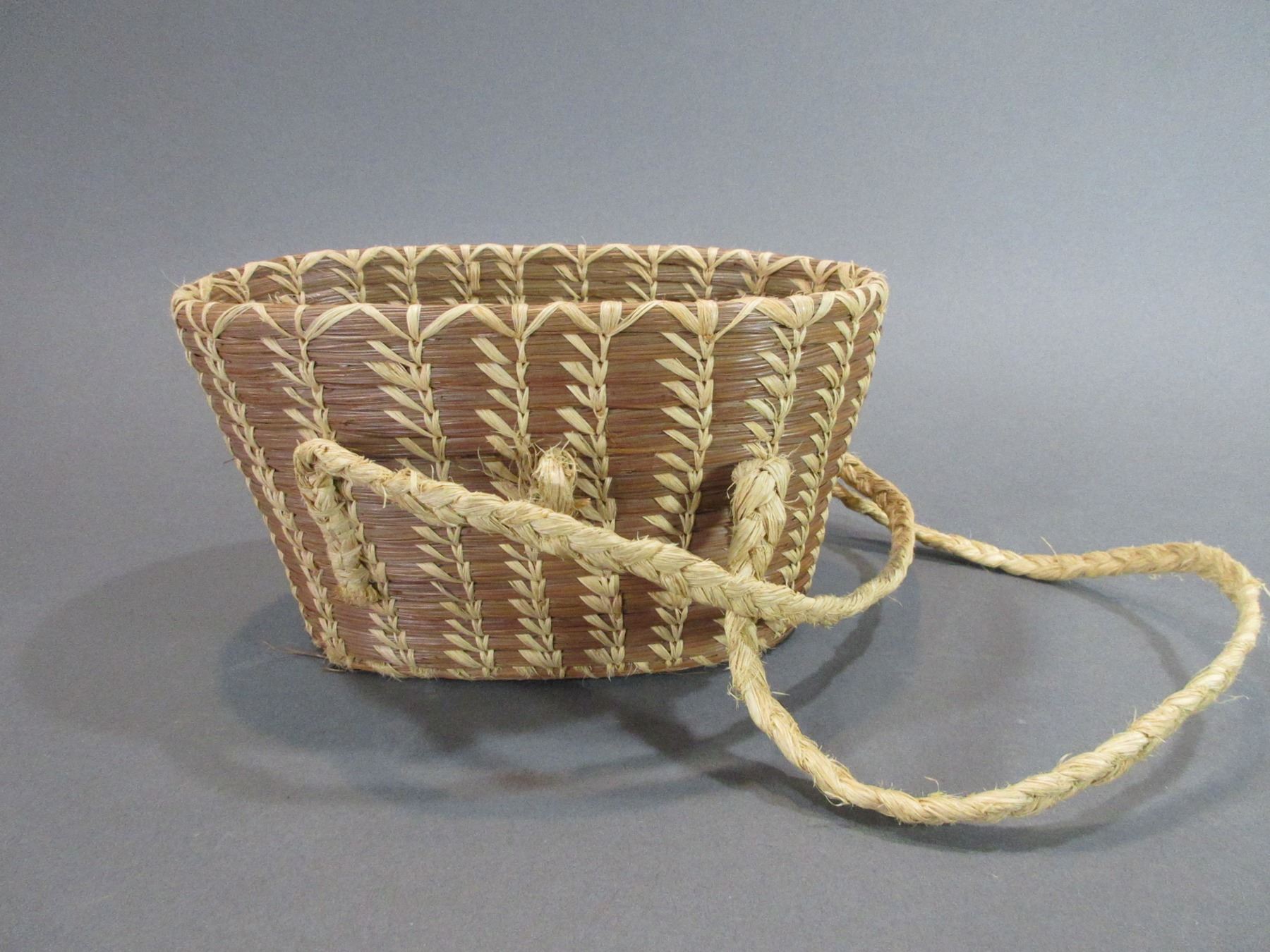 Pine Needle Purse/Basket With Handles- 5.5"H X 9.5"W X 6"D- Good Condition