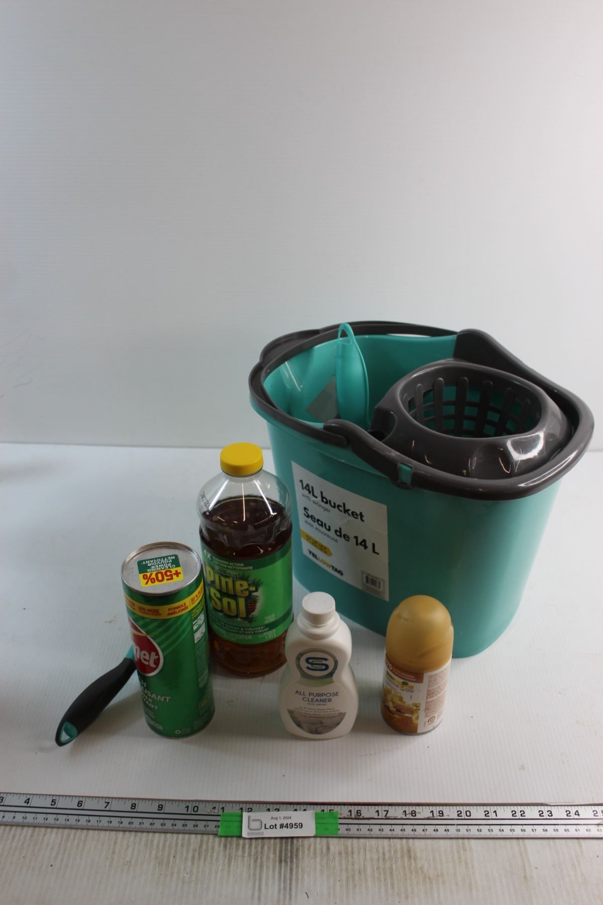 Pine Sol, Comet with Bleach, All Purpose Cleaner, Air Wick Air Freshener and 14L Mop Bucket