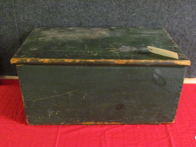 1800's small Pine Storage Box in original dark green paint and condition, 27" w x 16" d x 13" high