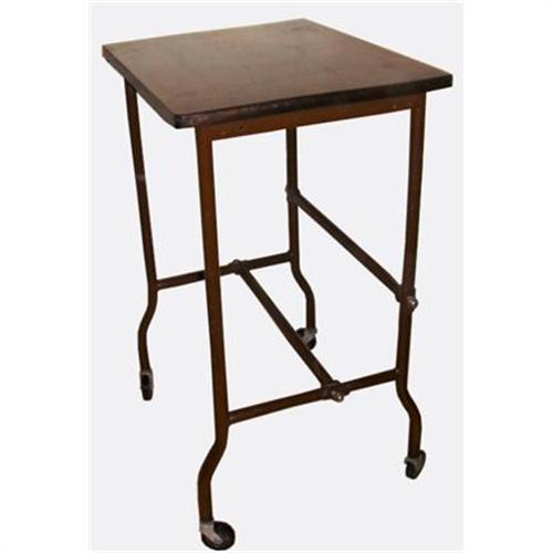 This is a highly functional piece! Originally used as a typewriter stand, this table has 4 bakelite wheels and a stunning pine top. The wood is dark brown with golden shimmers. The wheels work great and the entire table is in excellent shape. (Though I'm not sure of the exact age). Brought to you by Sand Hill East.