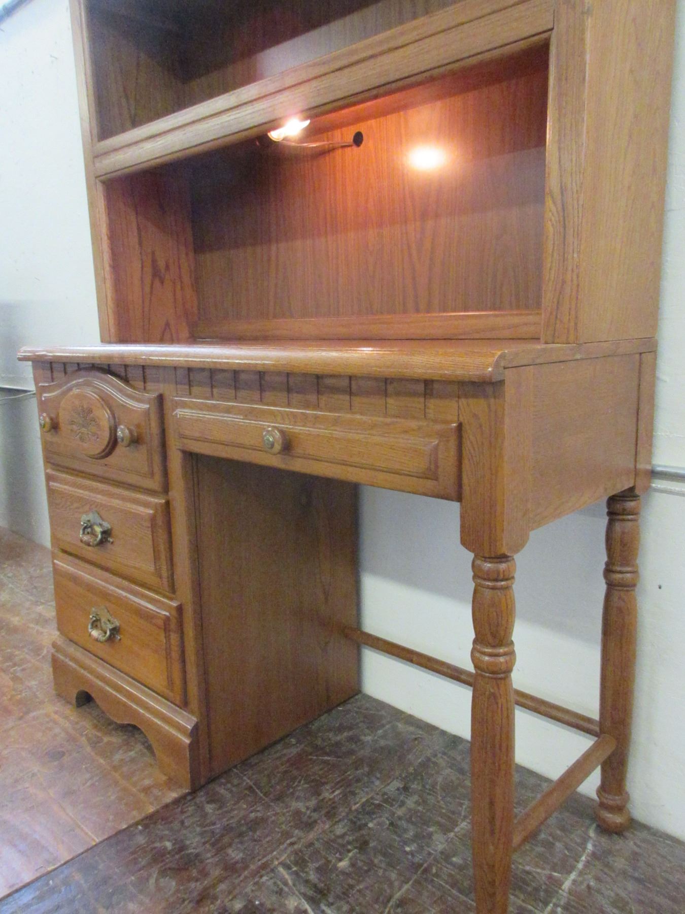 Pine Veneer Desk With Stacking Hutch- 4 Drawers- Great Condition- 78"H X 44"W X 16"D