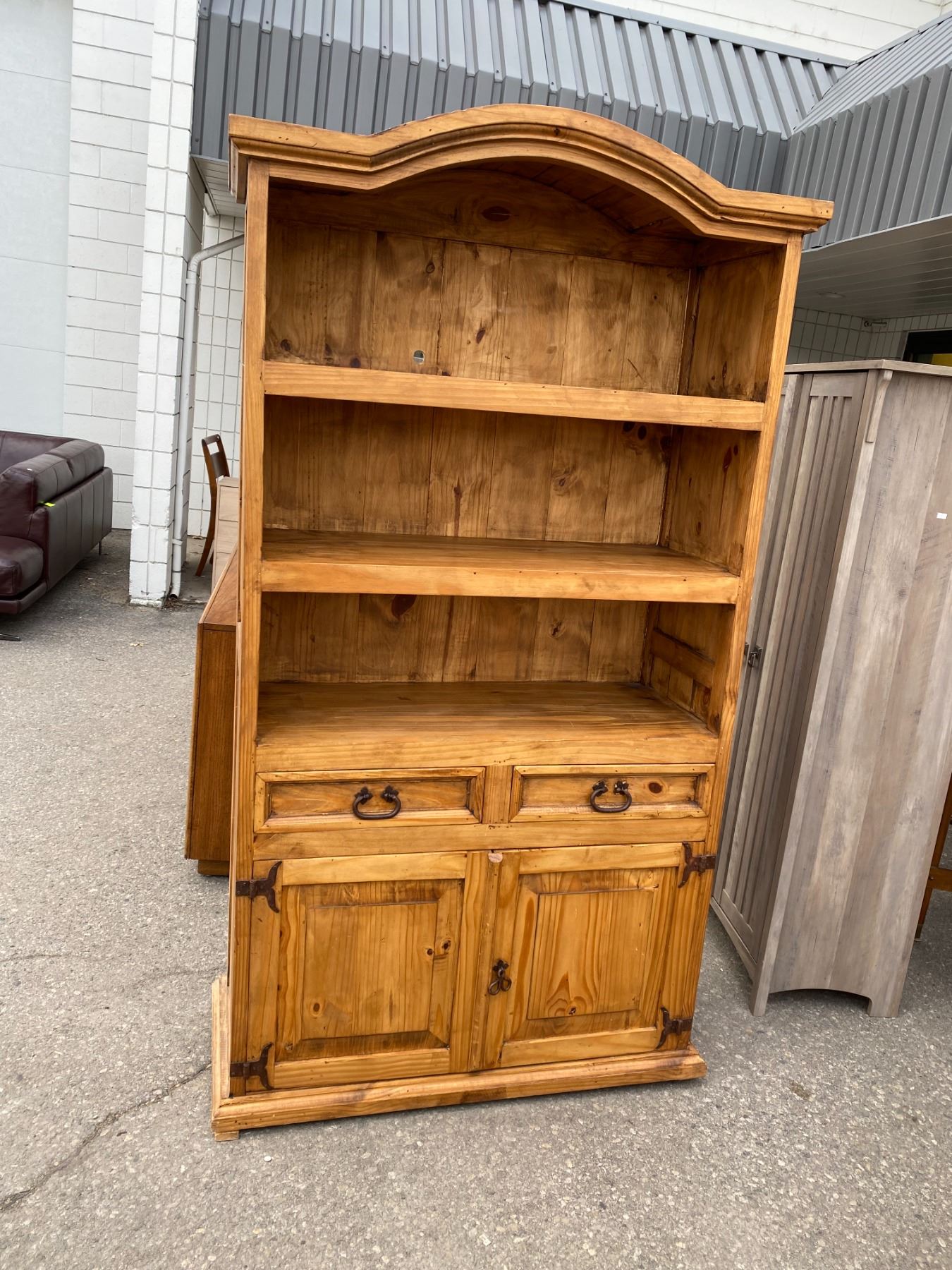 Pine shelf 39 1/4 inches wide 16.5 deep 75.5 inches tall