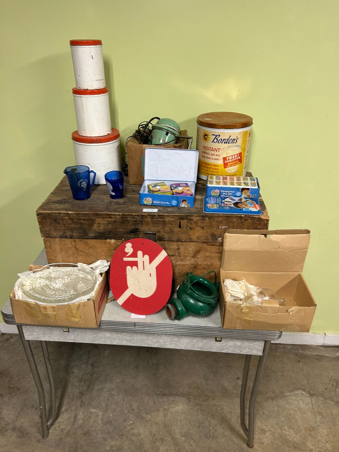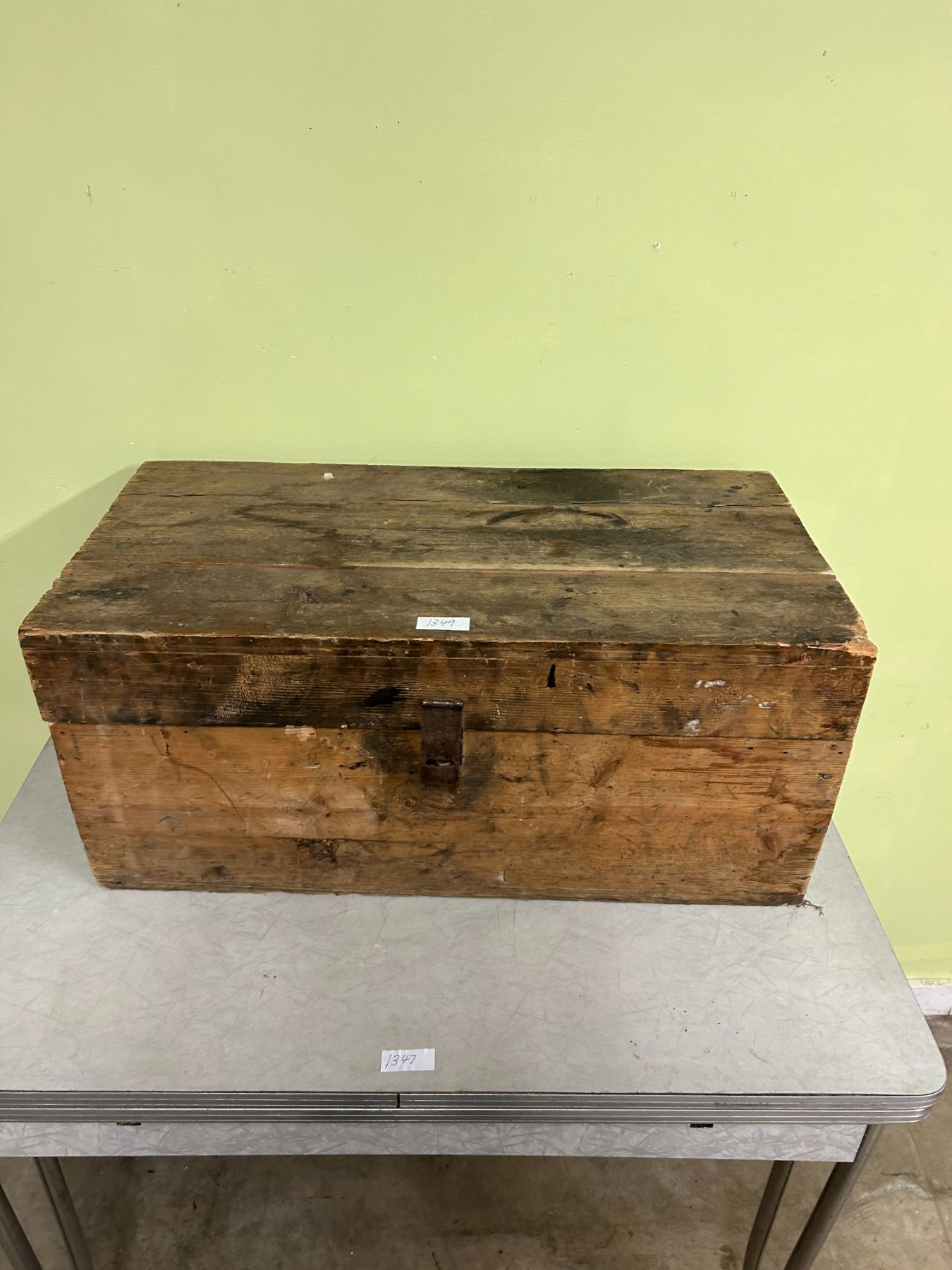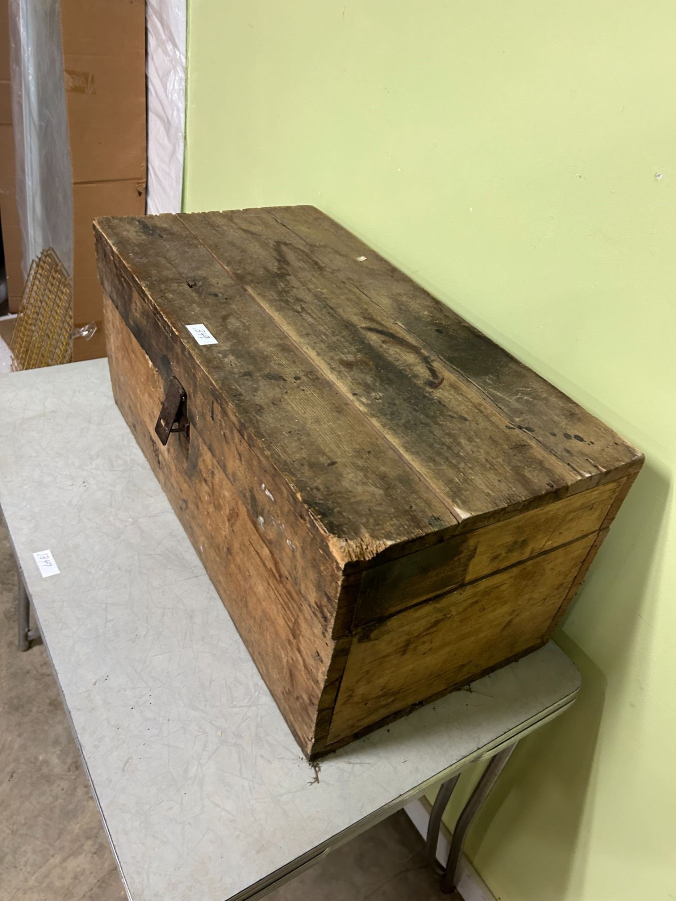 Pine trunk, with collectibles - 30"W x 16"D x 14"H
